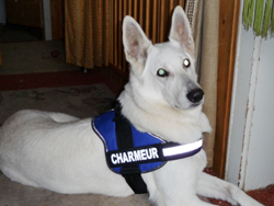 The white German shepherd Penelope - she is called Penny - is six years old and blind. She ended up at the Munich animal shelter, was severely emaciated, had diarrhoea and was in a poor general condition. After a thorough veterinary examination, it turned out that she had a pancreatic malfunction and tumours. Penny underwent two operations and was put on a special diet with the addition of supporting enzymes, which she would have to follow for the rest of her life.